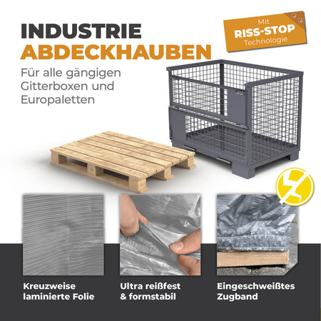 • Einfache Handhabung: Zugband am Rand ermöglicht schnelles Überziehen und sicheren Halt auf Paletten.
