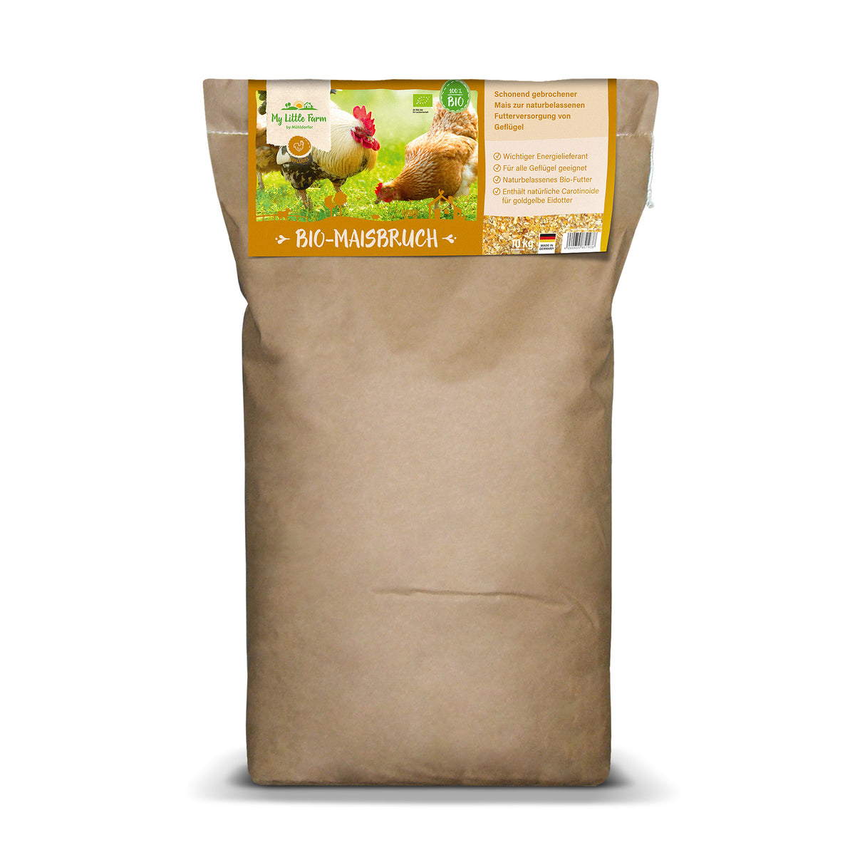 Bio-Maisbruch ist ein naturbelassenes, energie-reiches Futter für Geflügel — ideal zur Unterstützung in Legephasen oder während der Mauser. Der Mais stammt aus ausgewählten Bio-Betrieben, wurde schonend gebrochen und doppelt gereinigt, um hohe Qualität und gute Verdaulichkeit zu sichern.