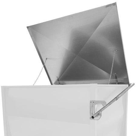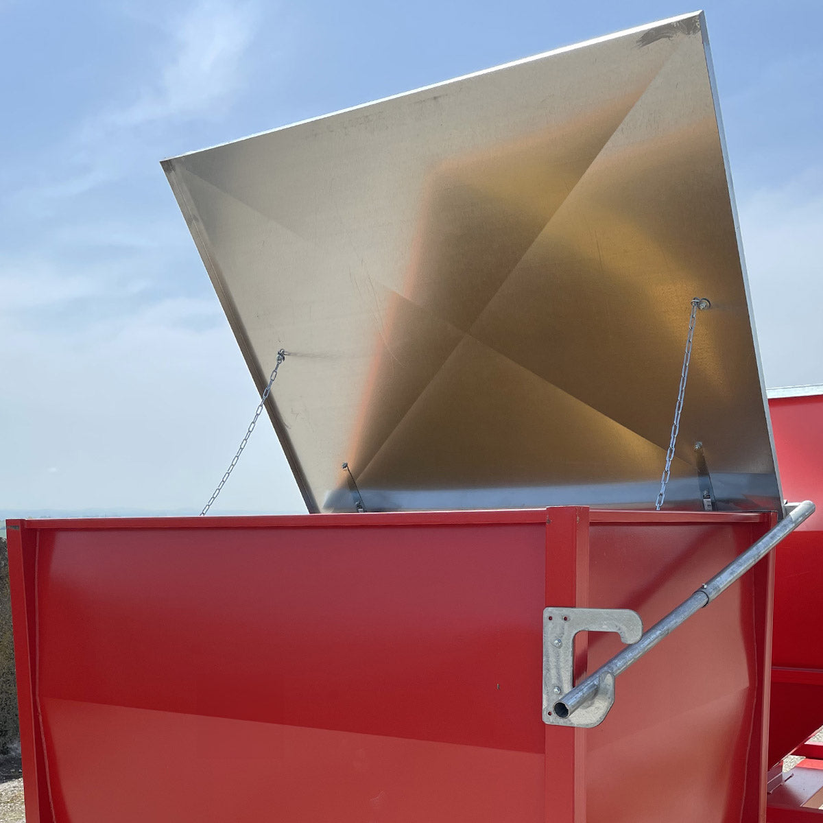 Die passenden Deckel für den mobilen Lagerbehälter schützen das Lagergut zuverlässig vor Witterung, Staub und Verschmutzungen. Es stehen zwei Varianten zur Verfügung: ein standardverzinktes Dach und ein verstärktes Dach mit praktischem Bedienhebel für einfaches Öffnen und Schließen. Beide Varianten sind passgenau für die 2 m³ Lagerbehälter konstruiert und garantieren eine langlebige Nutzung.