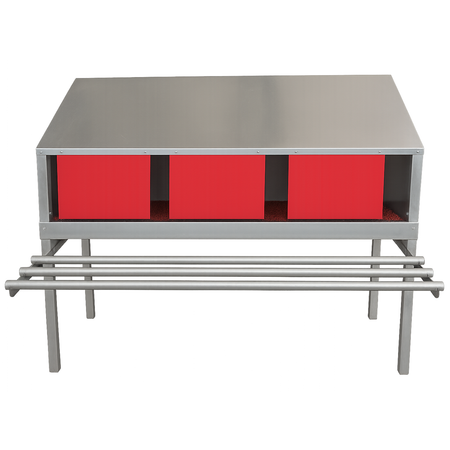 Dank stabilem Stahlgehäuse, schneller Montage und hoher Alltagstauglichkeit eignet sich das Gruppen-Legenest ideal für Mobilställe, Freilandhaltungen oder stationäre Ställe. Durch seine flexibles Design findet es mühelos sowohl am Rand als auch mitten im Stall seinen idealen Platz, ganz ohne feste Befestigungen.