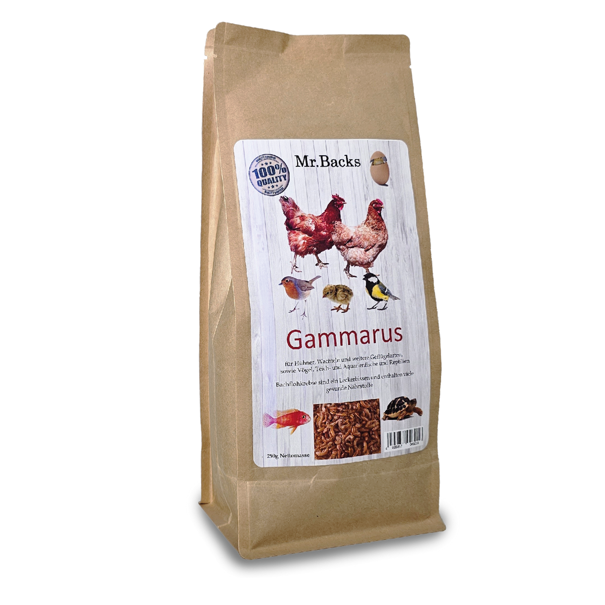 Mit Mr. Backs Gammarus sorgen Sie für eine abwechslungsreiche und nährstoffreiche Ergänzung im Futter Ihrer Hühner, die zur allgemeinen Gesundheit und zum Wohlbefinden beiträgt.