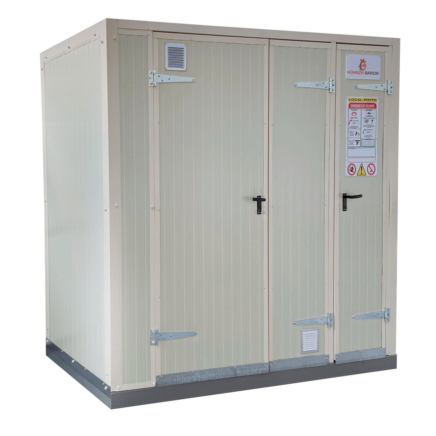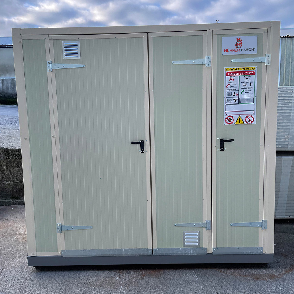 Das kleinste PHYTO-Gebäude eignet sich ideal als kompakter Lagerraum für kleinere Mengen an Pflanzenschutzmitteln oder Chemikalien. Dank seiner kompakten Bauweise findet es auch auf engem Raum Platz und bietet dennoch alle sicherheitsrelevanten Ausstattungsmerkmale.
