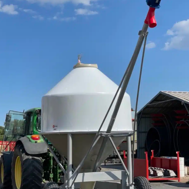 Das Silo wird vormontiert geliefert und ist sofort einsatzbereit. Durch die optimierte Bauweise ist eine Befüllung bequem vom Boden aus möglich, und die niedrige Standhöhe unterhalb des Silos ermöglicht eine einfache Entnahme oder den Anschluss an Fördersysteme. Das Glasfaser-Silo ist in drei Größen erhältlich und bietet damit für jede Betriebsgröße die passende Lösung – von kompakten Lagervolumen bis hin zu großem Vorratsbedarf. Ideal für landwirtschaftliche Betriebe, die Wert auf langlebige Materialien, mobile Flexibilität und sichere Lagerbedingungen legen.