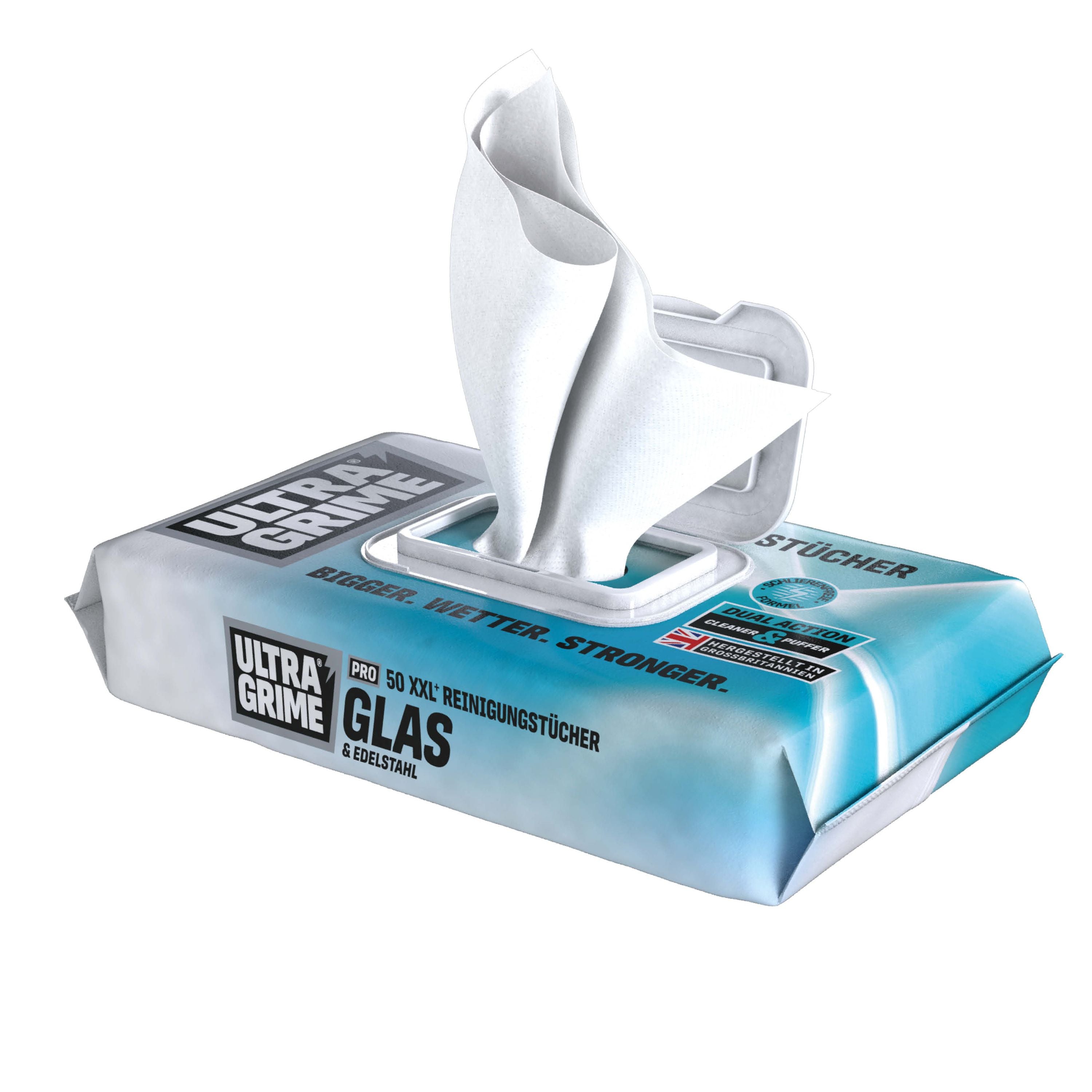 UltraGrime® Pro Glas & Edelstahl – XXL Premium Feuchtreinigungstücher