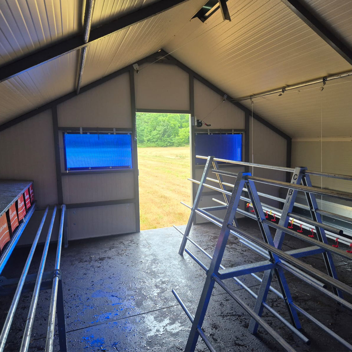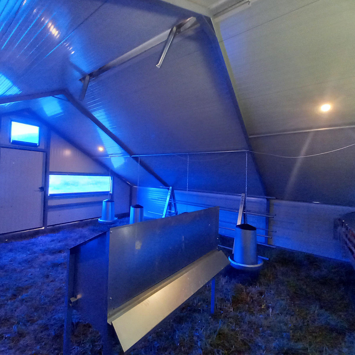 Das Belüftungssystem ist auf hohe Tierzahlen abgestimmt und gewährleistet eine gleichmäßige Luftzirkulation. Glatte Innenflächen, große Türen und Auslaufklappen erleichtern Reinigung und Kontrolle. Durch die effiziente Isolierung bleibt die Temperatur im Stall stabil – zugfrei im Winter, kühl im Sommer.