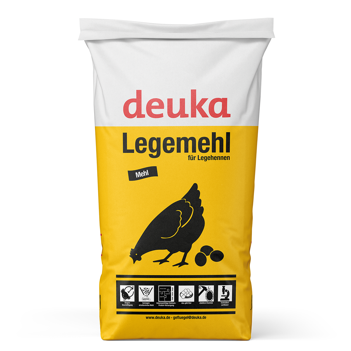 deuka Legemehl ist ein hochwertiges Ergänzungsfutter, das speziell für Legehennen ab der Legereife entwickelt wurde. Die ausgewogene Rezeptur vereint eiweißreiche Komponenten, essentielle Aminosäuren, ein angepasstes Mineralstoff- und Calciumpaket sowie lebenswichtige Vitamine und Spurenelemente. Dadurch legt das Legemehl die Grundlage für eine nachhaltige Legetätigkeit, stabile Eischalen und eine gleichbleibend hohe Eiqualität. In Kombination mit den deuka Körnerprodukten ergibt sich eine strukturierte Fütterung, die sowohl ernährungsphysiologisch als auch verhaltensfördernd wirkt.