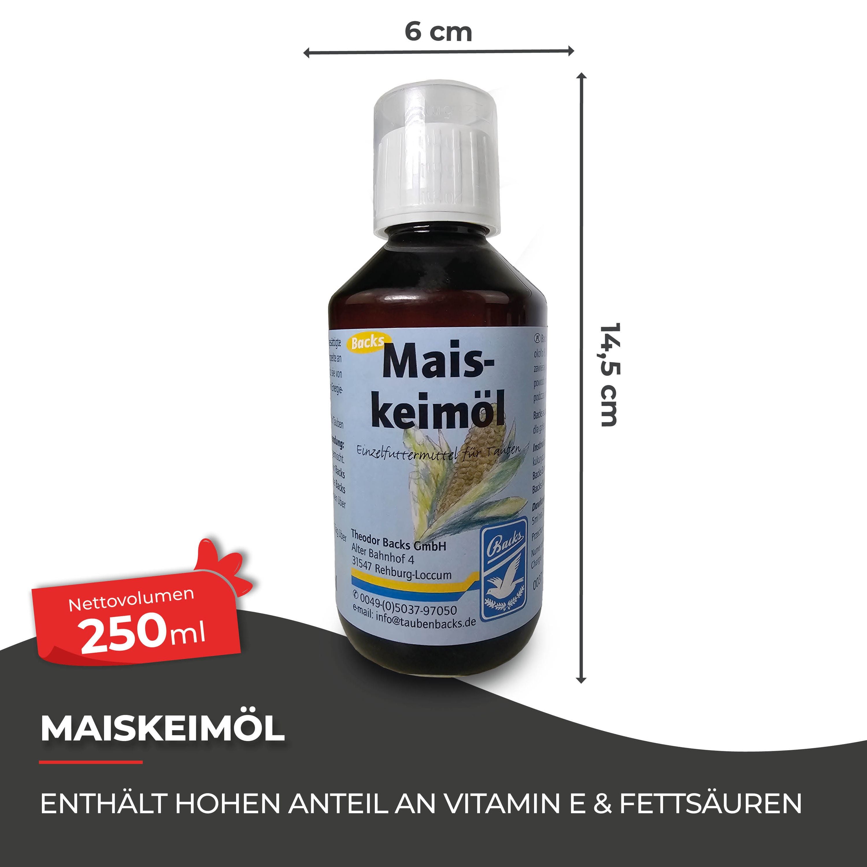 Backs Maiskeimöl ist ein wertvolles Ergänzungsfuttermittel für Hühner, das dank seines hohen Anteils an Vitamin E und essentiellen Fettsäuren die Gesundheit und Leistungsfähigkeit Ihrer Hühner fördert. Dieses Öl ist besonders während anspruchsvoller Phasen wie der Legezeit und in Zeiten hoher Aktivität von Bedeutung.