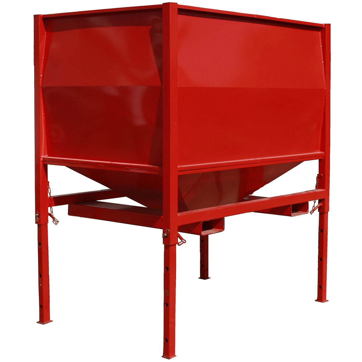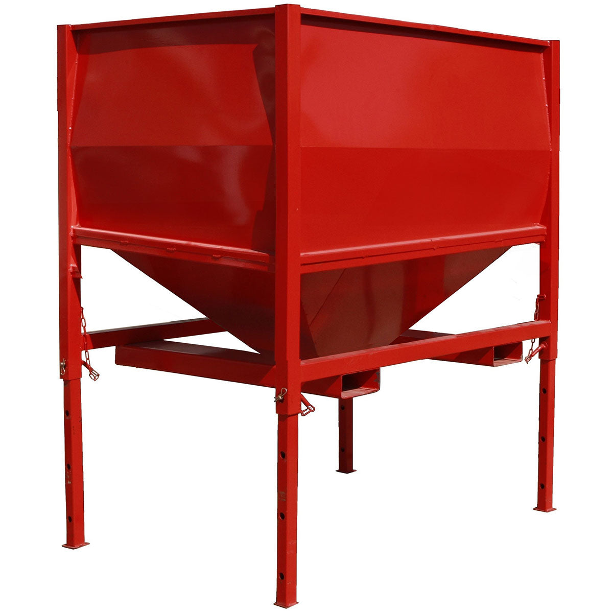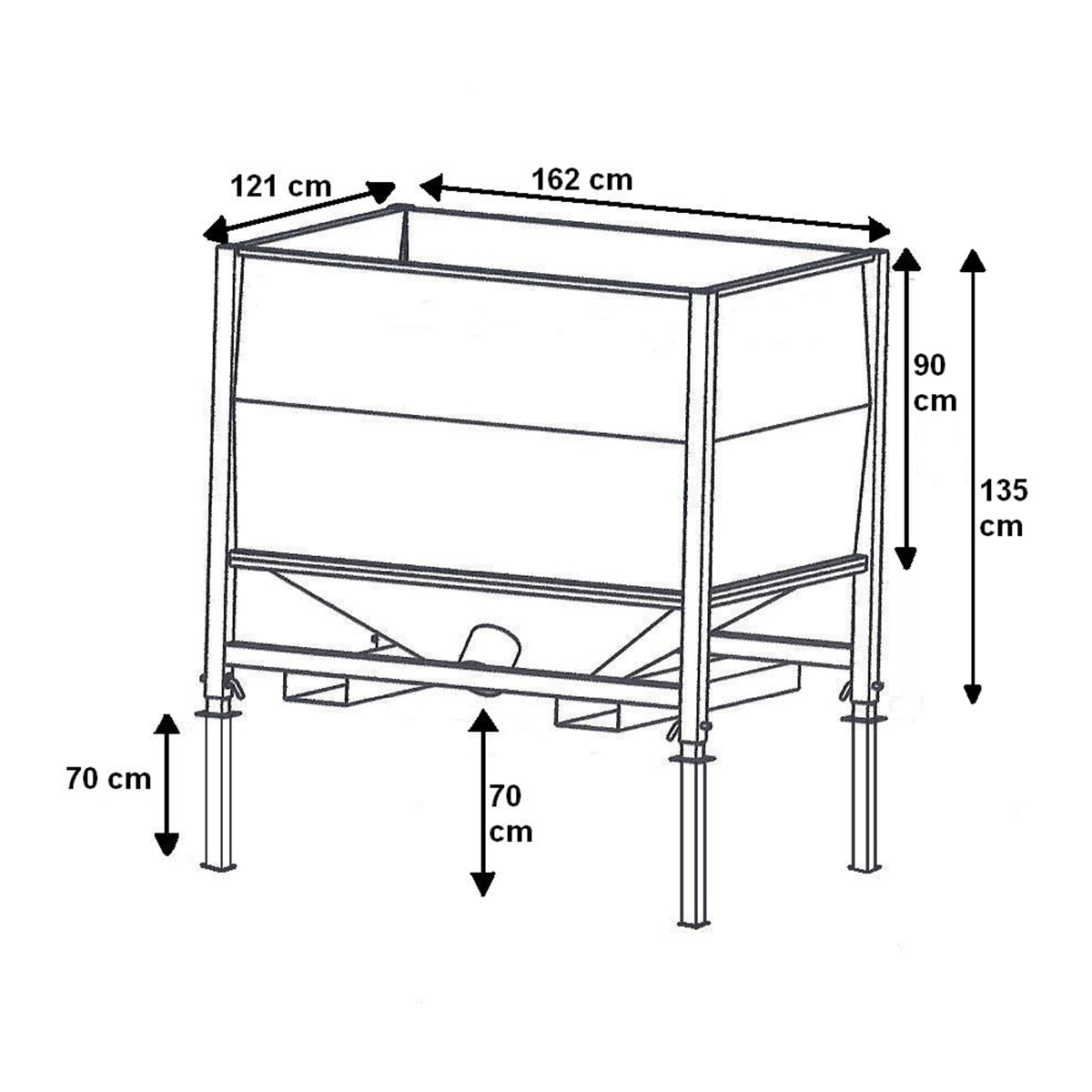 Ein weiterer Qualitätsfaktor ist die Stützkonstruktion. Bei einigen Herstellern werden Trichter und konischer Unterbau nicht ausreichend getragen, was langfristig zu Materialermüdung führt. Der CABIBOX Lagerbehälter ist vollständig auf einen robusten 40-mm-Rohrrahmen geschweißt, der jegliches Verformungsrisiko ausschließt. Auch die Fertigungsart hat großen Einfluss auf Haltbarkeit und Stabilität. Während verschraubte Behälter an jeder Schraubstelle Belastungen ausgesetzt sind und mit der Zeit Schwachstellen entwickeln, ist ein vollständig geschweißter Behälter wesentlich widerstandsfähiger – selbst bei häufigem Umsetzen.
