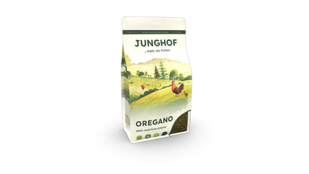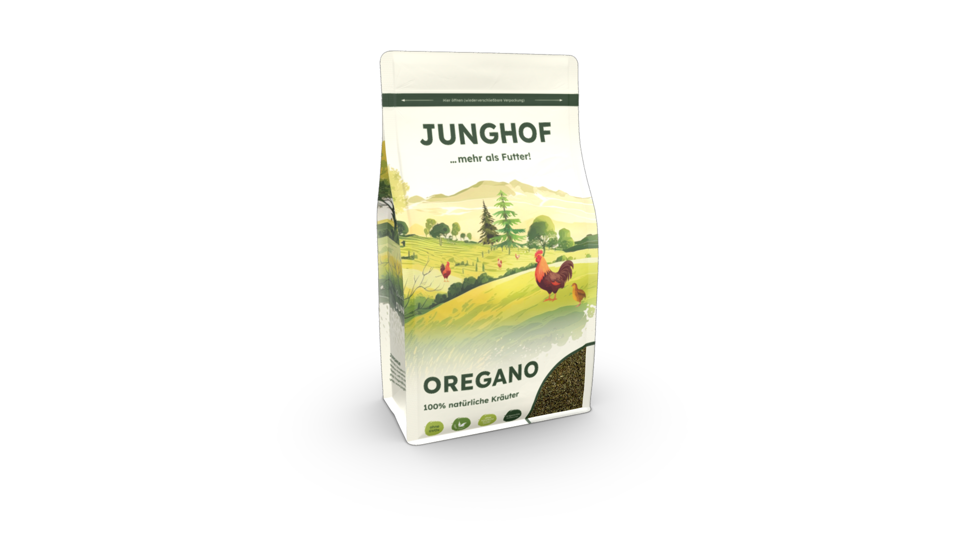 Oregano ist eine naturbelassene Futterergänzung, die auf natürliche Weise den Organismus von Geflügel unterstützen kann. Das enthaltene Carvacrol wirkt sich positiv auf die Abwehrkräfte aus und kann dabei helfen, Schaderreger wie Bakterien, Viren oder andere Mikroorganismen im Organismus zu reduzieren. Besonders während der Aufzuchtphase von Küken kann Oregano zur Stärkung des Immunsystems beitragen, lässt sich aber ebenso für erwachsene Tiere verwenden. Die Anwendung ist einfach: Oregano kann direkt unter das Futter gemischt werden.