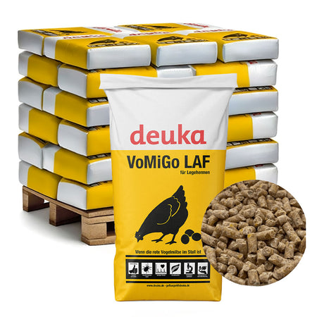 deuka VoMiGo LAF ist ein speziell entwickeltes Alleinfutter für Legehennen ab der Legereife, das gezielt bei einem Befall mit der Roten Vogelmilbe (Dermanyssus gallinae) eingesetzt werden kann. Der Befall mit dem blutsaugenden Parasiten stellt für das Geflügel eine erhebliche Belastung dar – er verursacht Stress, mindert die Legeleistung und schwächt das Immunsystem. Mit seiner abgestimmten Rezeptur aus hochwertigen Komponenten unterstützt dieses Futter die Hennen in dieser anspruchsvollen Phase optimal und trägt zu einer stabilen Eibildung sowie zur allgemeinen Widerstandskraft der Tiere bei.