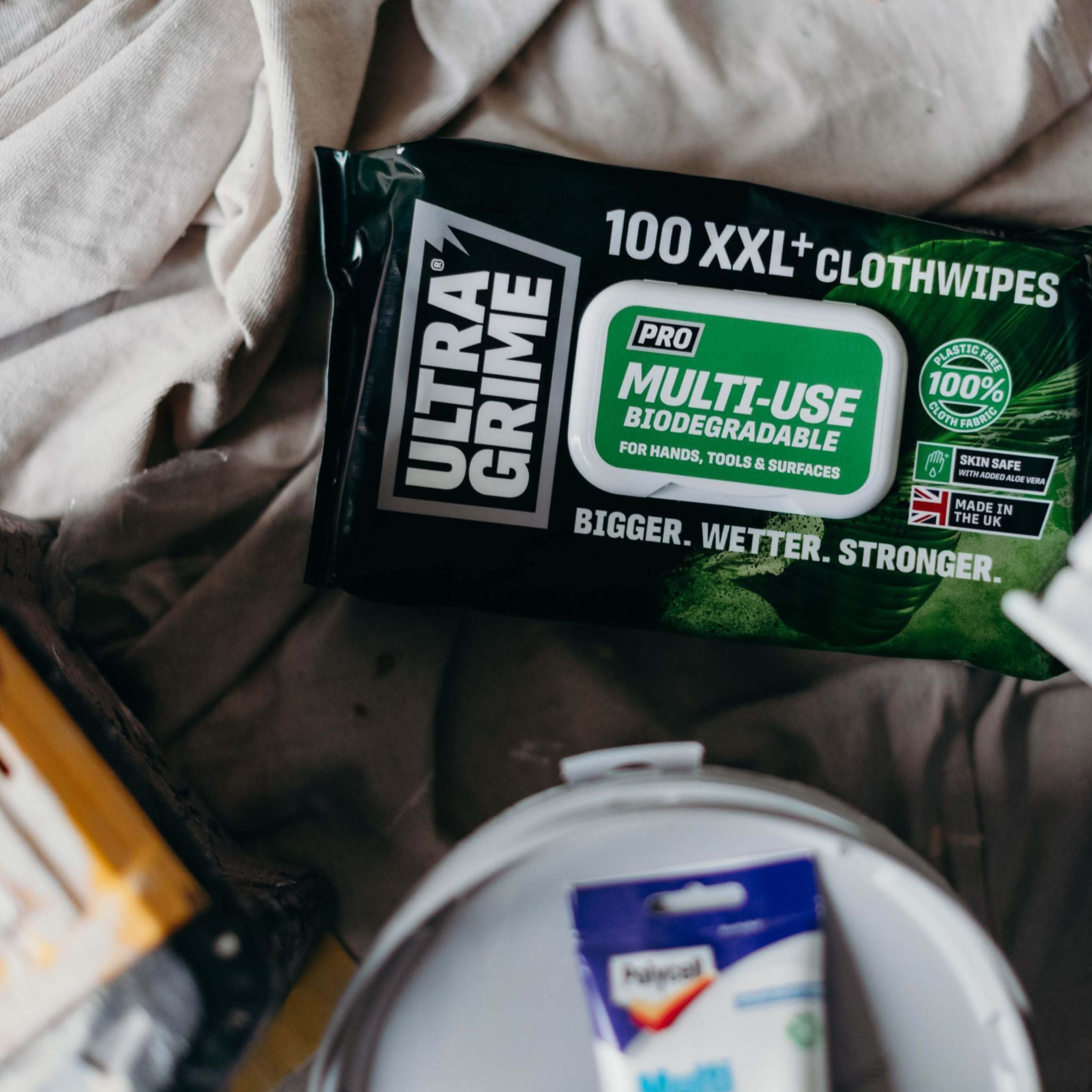 Ob in der Werkstatt, im Haushalt, im Büro oder im Fahrzeug – die UltraGrime® Pro Multi-Use Bio Reinigungstücher sind vielseitig einsetzbar und für alle Oberflächen geeignet. Sie bieten eine umweltbewusste Lösung für unterschiedlichste Reinigungsanforderungen.