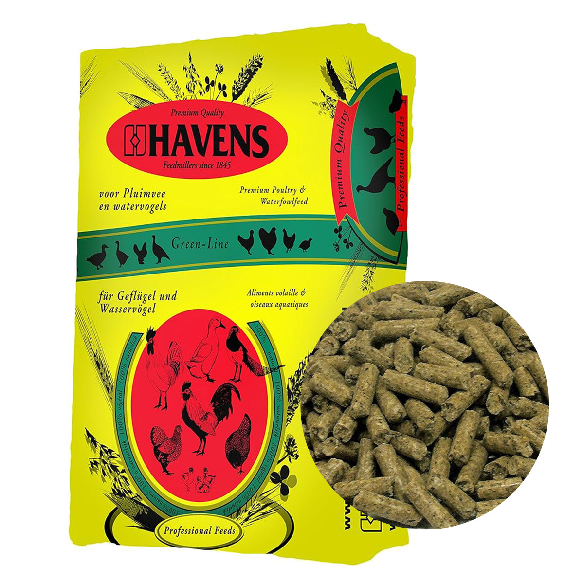 HAVENS START & GROW 3-mm Spezialpellet wird vom Schlüpfen bis zur 16.–18. Lebenswoche verfüttert. Es kann pur oder in Kombination mit kleinen Mengen Getreide gegeben werden. Beachte, dass Getreidemischungen höchstens 30 % der täglichen Futterration ausmachen sollten, da sie keine zusätzlichen Vitamine oder Mineralstoffe enthalten.