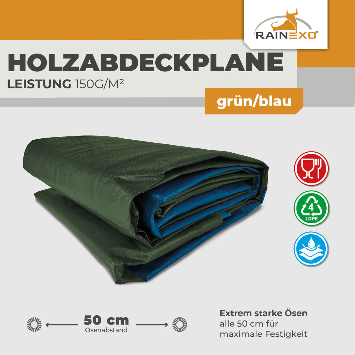 Überdachungsstreifen für Hühnerauslauf 150g/m², Holzabdeckplane Grün/Blau vers. Größen