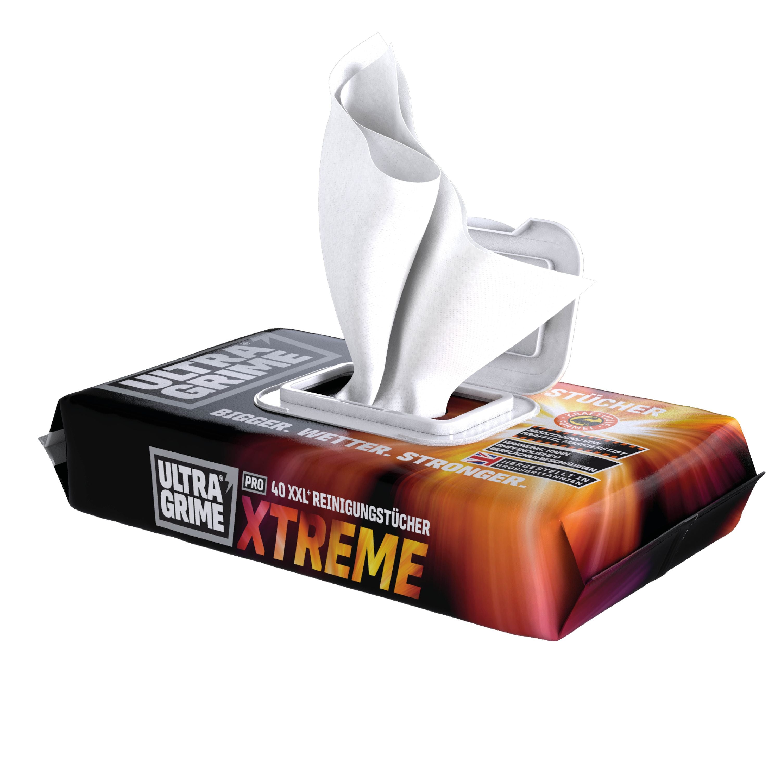 Die UltraGrime® Pro Xtreme Feuchtreinigungstücher wurden speziell für Situationen entwickelt, in denen herkömmliche Reinigungslösungen nicht mehr ausreichen. Ob auf der Baustelle, in der Werkstatt, im industriellen Umfeld oder bei anspruchsvollen Reinigungsarbeiten im Haushalt – diese Tücher liefern kompromisslose Leistung, wenn es darauf ankommt. Sie kombinieren eine besonders kraftvolle Reinigungsformel mit einem extrem widerstandsfähigen Tuchmaterial und ermöglichen so eine schnelle, effektive und zugleich komfortable Reinigung selbst unter härtesten Bedingungen.